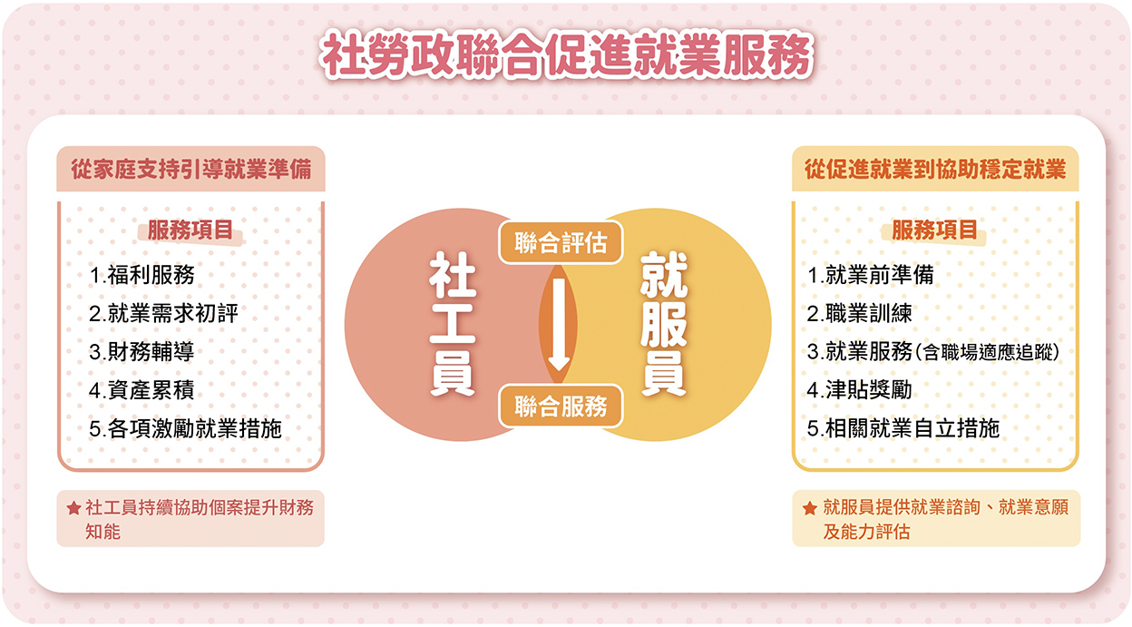 2004年我國的社會福利綱領提出:「以積極福利替代消極救助」,揭示協助低收入戶脫貧自立的政策主軸。2005年《社會救助法》增訂第15條之1,規定地方政府得設計方案幫助低收入家庭脫離貧窮邁向生活自立。2016年衛福部發布《協助積極自立脫離貧窮實施辦法》,引導地方政府可以自行或是和民間合作提供多元脫貧措施, 從早期的教育投資、就業自立、資產累積三大重點,擴展到社區產業、社會參與等多元做法,讓服務內容更豐富。