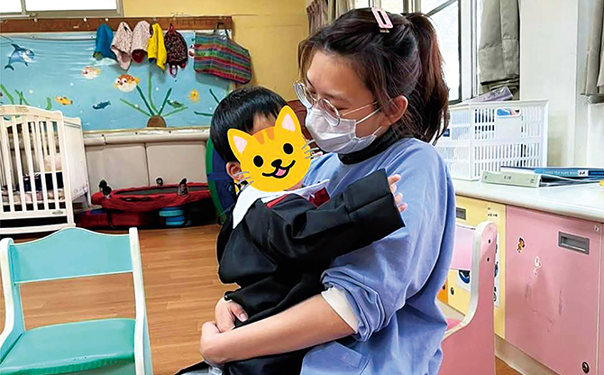 在大學就讀幼保系期間,她便已將照顧0到2歲嬰幼兒確立為終身志業。一次偶然的機緣,她得知善牧之家的工作內容,心中便默默將這裡視為目標,努力打工兼差,自費學習嬰兒按摩等課程,只為確保自己能以最專業的姿態,守護這些脆弱的孩子。